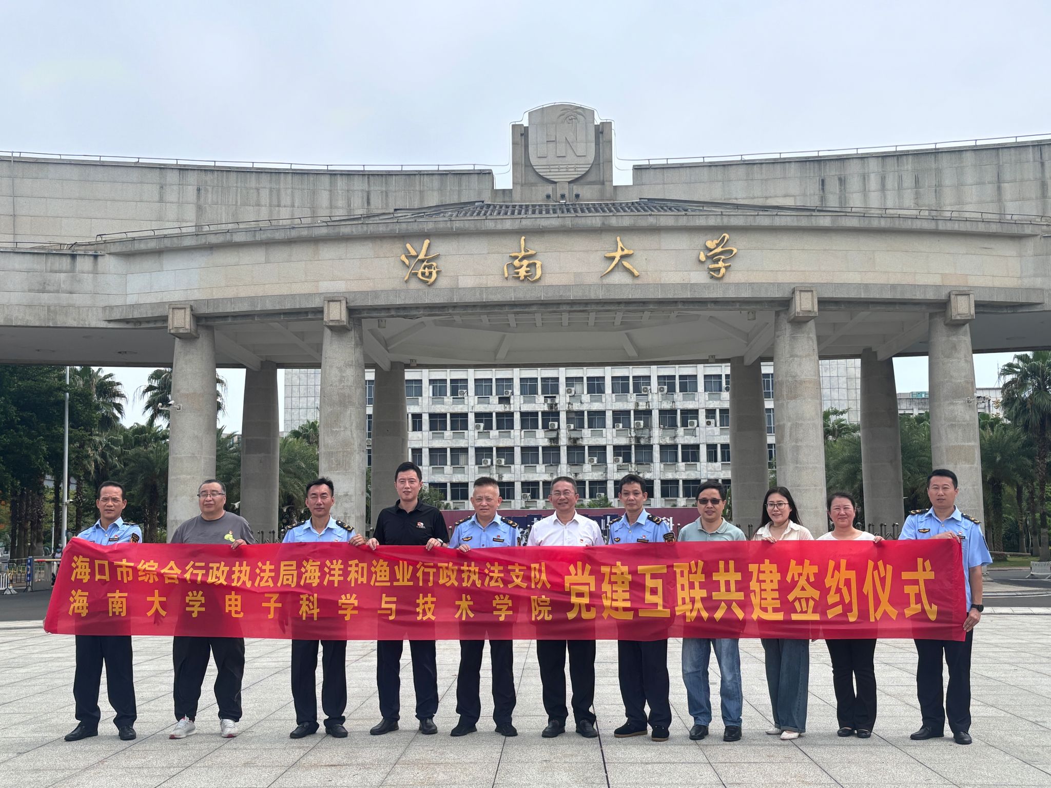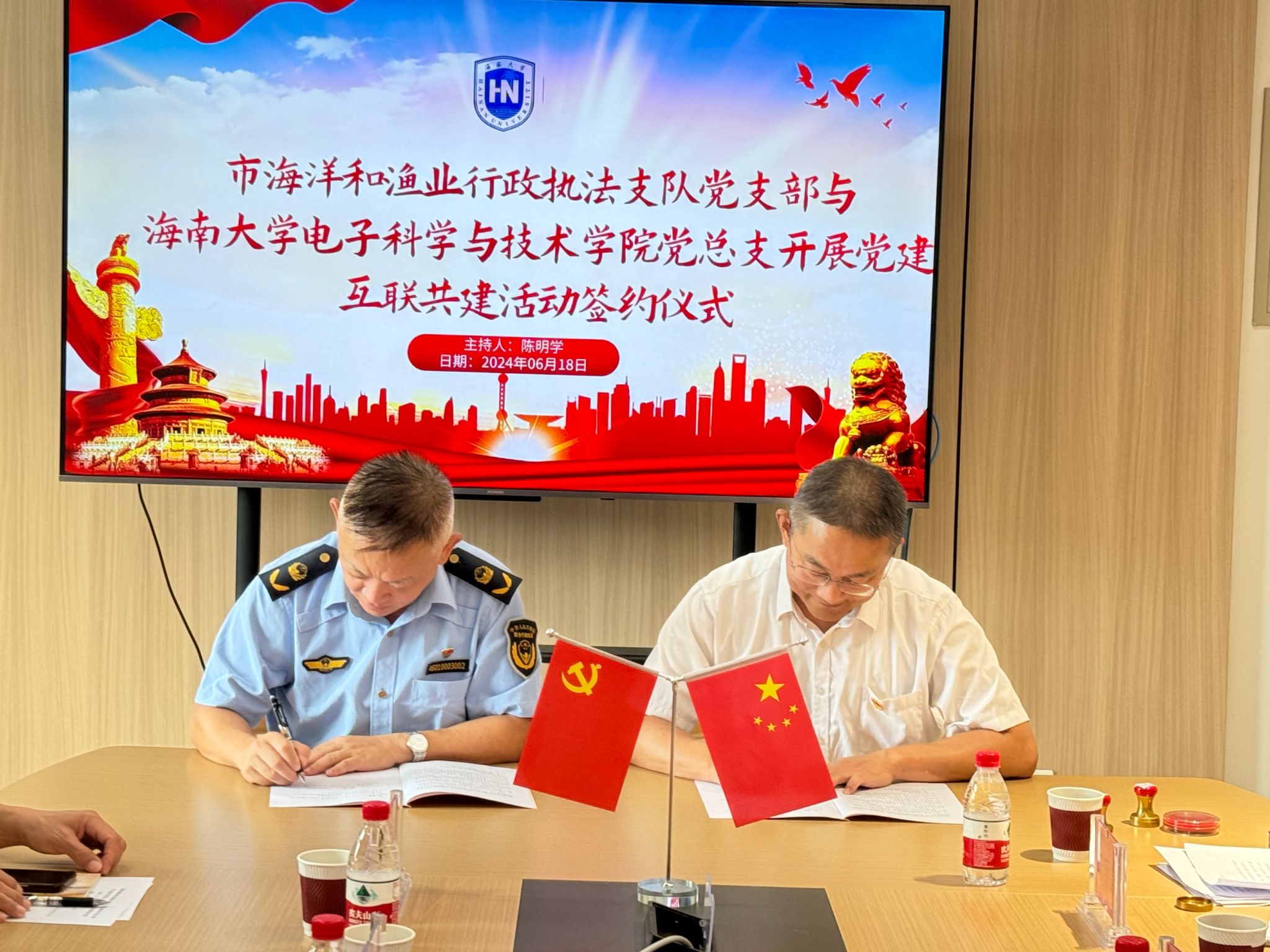 6月18日上午,海口市综合行政执法局海洋和渔业行政执法支队党支部与电子科学与技术学院党总支党建互联共建签约仪式在william威廉亚洲官方信息科技大楼507会议室举行,市海洋和渔业行政执法支队党支部书记、政委陈明学;电子科学与技术学院党总支书记林华出席会议,会议由陈明学主持。