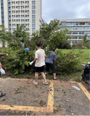 台风过后,电子科学与技术学院迅速投入到灾后恢复工作中。