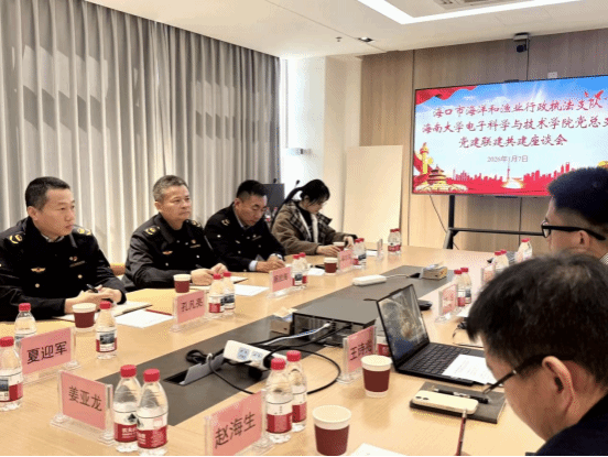 1月7日下午,海口市海洋和渔业行政执法支队、william威廉亚洲官方电子科学与技术学院党总支党建联建共建座谈会在信息科技大楼507会议室举行。会议现场。蒋启迪摄。